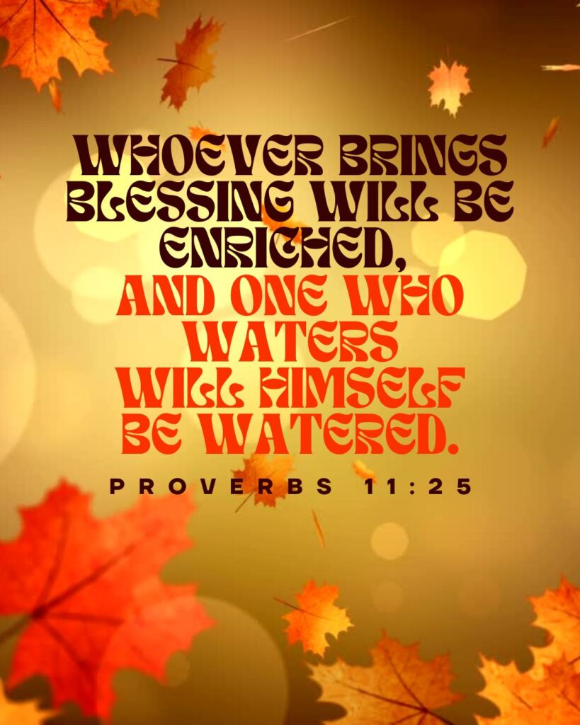Blessing others blesses us. Other translations of this verse say, “…those who refresh others will themselves be refreshed” (NLT). Nothing compares to putting someone else’s needs before your own and encouraging them along the journey. Their delight will delight you.