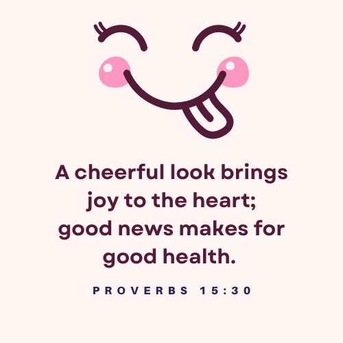 Lord, thank You for the good news of the cross that brings health to our bones and a cheerful look to our faces. Please let us bring joy to others as we relish in the gift of grace Jesus gives us.