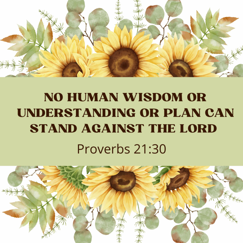 Nothing we think we know, understand, or plan can stand against the Lord. We can’t make the sun rise or set. Arrogantly, we think we control our small world, but we don’t. God puts breath in our lungs; life force comes from Him. No matter how much we try to argue the premise, we will always lose.