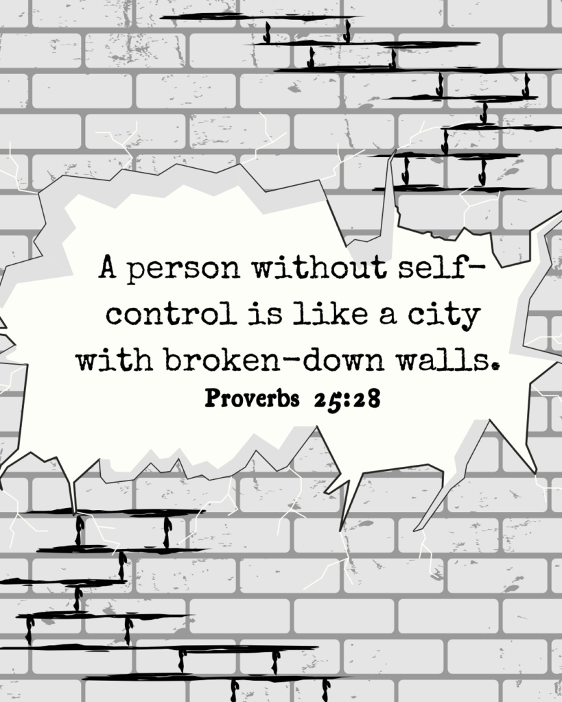 Identifying your weaknesses will help you develop a battle plan to overcome them. Vulnerabilities leave us defenseless when under attack. But if we can fix the broken walls, we can find victory. Start filling in the holes with Jesus, and allow Him to become your strength in weakness. Ask the Savior for self-control, and let Him lead the way.
