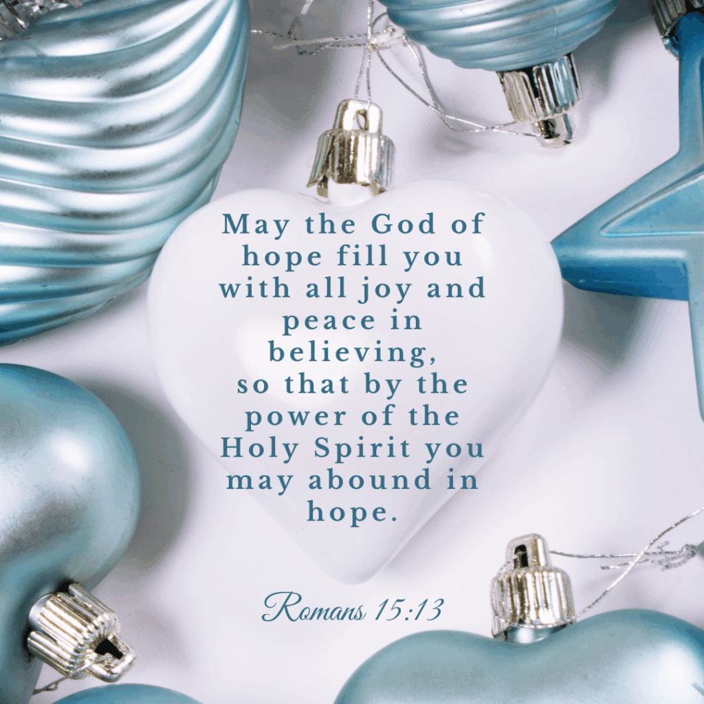 Paul mentions hope more in Romans than in any of his other letters. “God of hope” means the Creator who gives us hope through Jesus. Because of the Savior’s actions, we can look to tomorrow with anticipation of the coming glory. The Lord will accomplish all He wants to do through us, working out our problems. Trusting in the Almighty produces hope as we lean into His promises and expect them to come true in our lives. Believing in Christ gives us hope that His grace will continue to grow in our lives, with the help of the Holy Spirit, who prompts us.