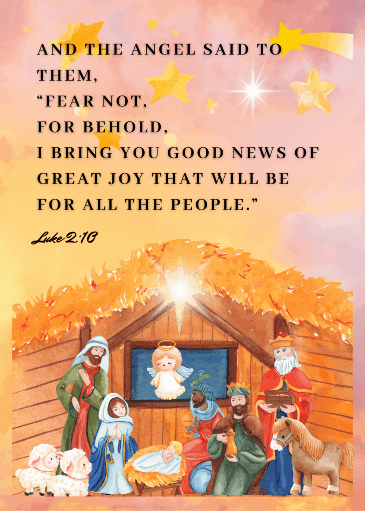As a shepherd on a hill, the stars shining in the night and the angels appearing would scare me. But heavenly hosts quickly assured the men, “Fear not, I bring you good news.” Only divine intervention would calm my nerves in such a climactic moment. A new era of peace and salvation came with the babe in the manger, as an angelic choir sang praises to God as the story unfolded.