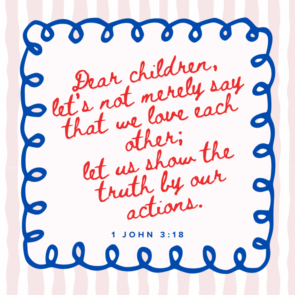 Love in deed, not just words. Find ways to show people you care. Blessing others blesses us.