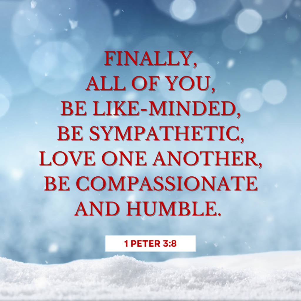Peter outlines the duties of Christians, stating that we should share the same mindset, have sympathy for each other’s struggles, love one another with compassion and humility, all in the same way Christ did for us. We need to look no further than the Son for an example of how to live out this verse. Throughout the New Testament, we see many instances of Jesus loving the people before Him with compassion and humility. From feeding thousands to healing the one, the Savior loved all.