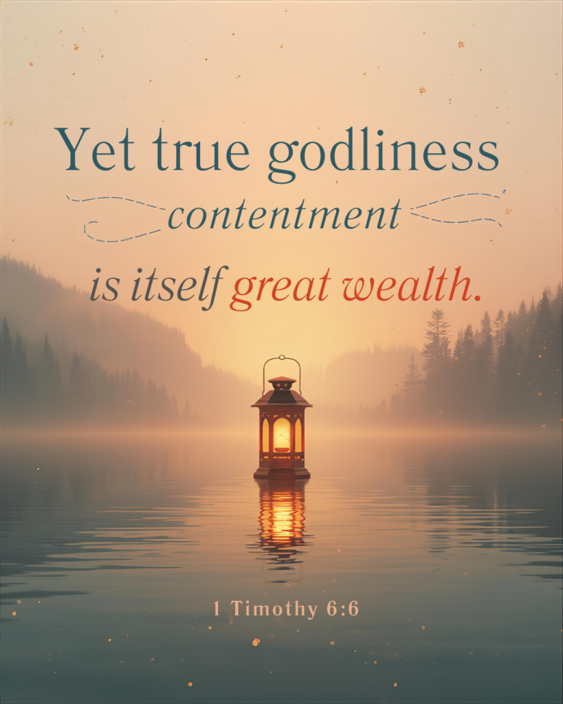 True godliness develops when we set our minds on things above, instead of things of this world. By relying on God’s promises, we’ll focus on the hope of His word rather than on the brokenness around us. A friend comes to mind, experiencing extreme pain, stuck in a hospital bed, the doctor’s unsure of how to treat her, who put on air pods, played her worship playlist, and raised her hands to God, singing His praises. She set her mind on things above, and not the earthly things surrounding her. As a result, she found contentment and true wealth, despite her bleak circumstances.