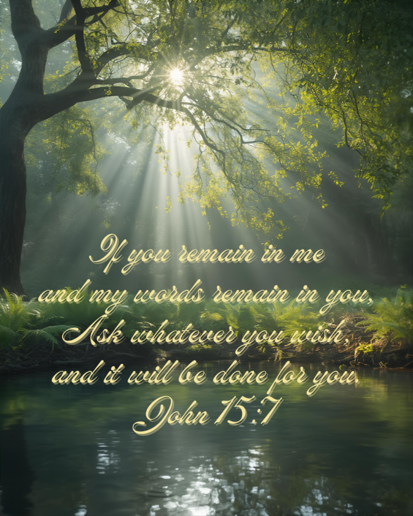 Our ongoing relationship with the Savior helps us remain in Him. By prioritizing time with the Lord, we will receive the nourishment we need to fulfill His purpose for our lives. As we apply God’s teachings to our daily activities, His words will shape our thoughts, and our desires will become His desires. When these two things happen, our life shifts, our prayers change, not because God bends to our will, but because we allow Jesus to form our will.