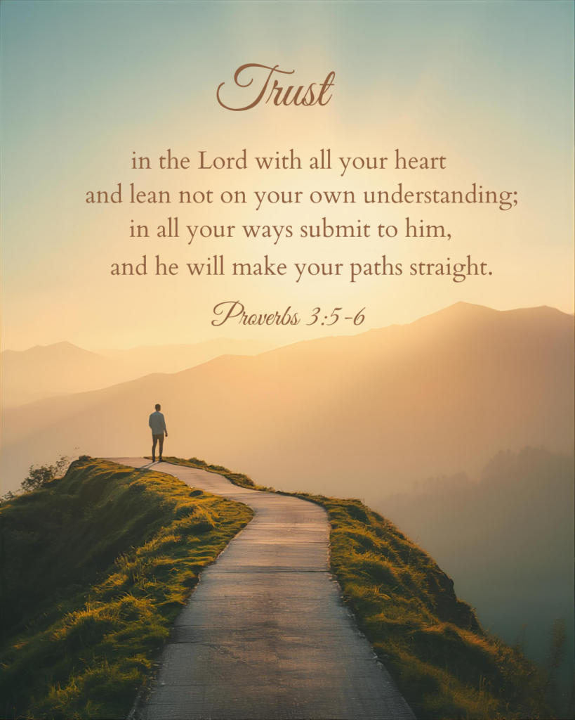 All my life, I have found these verses comforting. Long ago, I gave up the notion that I needed to know everything. Because God does, I can trust in Him. We don’t have to figure out every step forward; we must keep trusting. Like when we first placed our faith in Jesus, each day, we must decide again to follow Him. And even though we don’t understand everything happening around us, we can trust that He does. Everything works to the good for those who believe and trust Him, called according to His purposes (Romans 8:28).