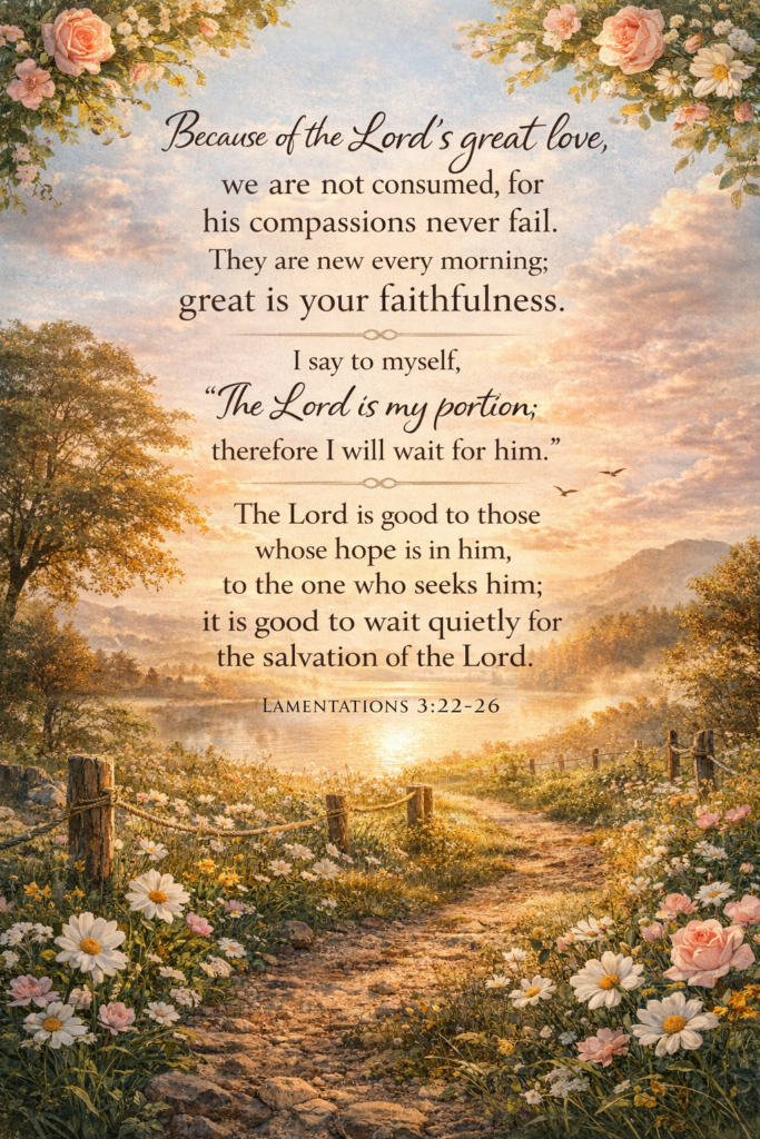 God sustains us with His love, especially when life feels overwhelming. Each sunrise brings new mercy from the Savior. The Lord never asks us to face the day empty-handed. In the waiting, hope takes root and faith deepens.