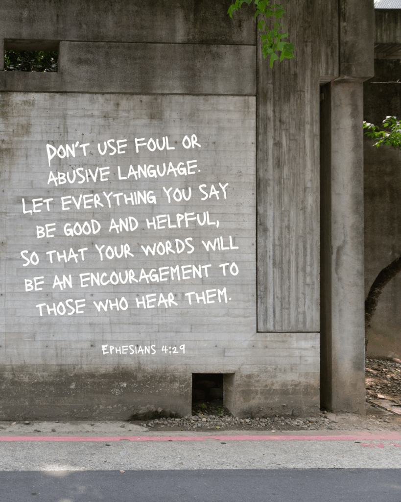 Until we can say things with love, we shouldn’t say them at all. If someone presses you on a topic you don’t want to discuss, you always have the option of saying, “I’m not ready to talk about it. I need more time.” Better to wait until you have a clearer perspective than to force an issue that could create problems. Malicious gossip and slander cause irreparable damage, and we shouldn’t partake in any of it. Unwholesome talk of any kind destroys relationships, and we must remain vigilant in what we say.